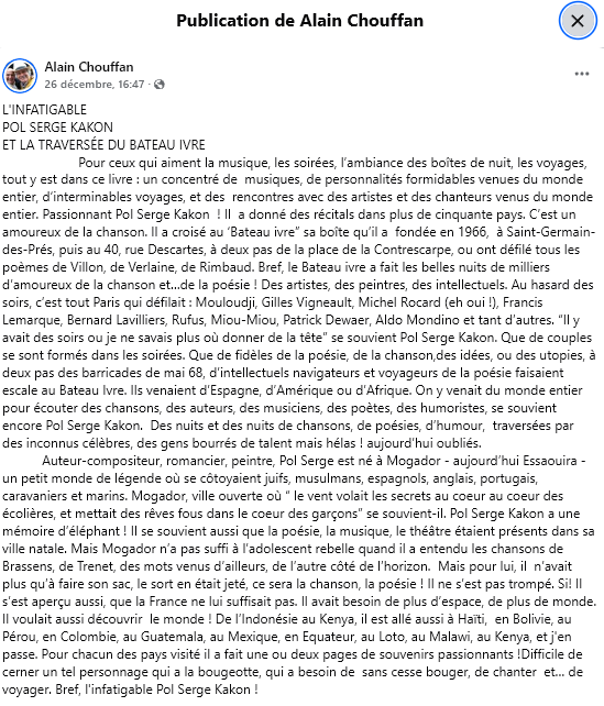 Pol Serge Kakon nous balade à travers le temps, d’une rive à l’autre de la Méditerranée. Son livre déborde de vie, de tendresse et de regrets.